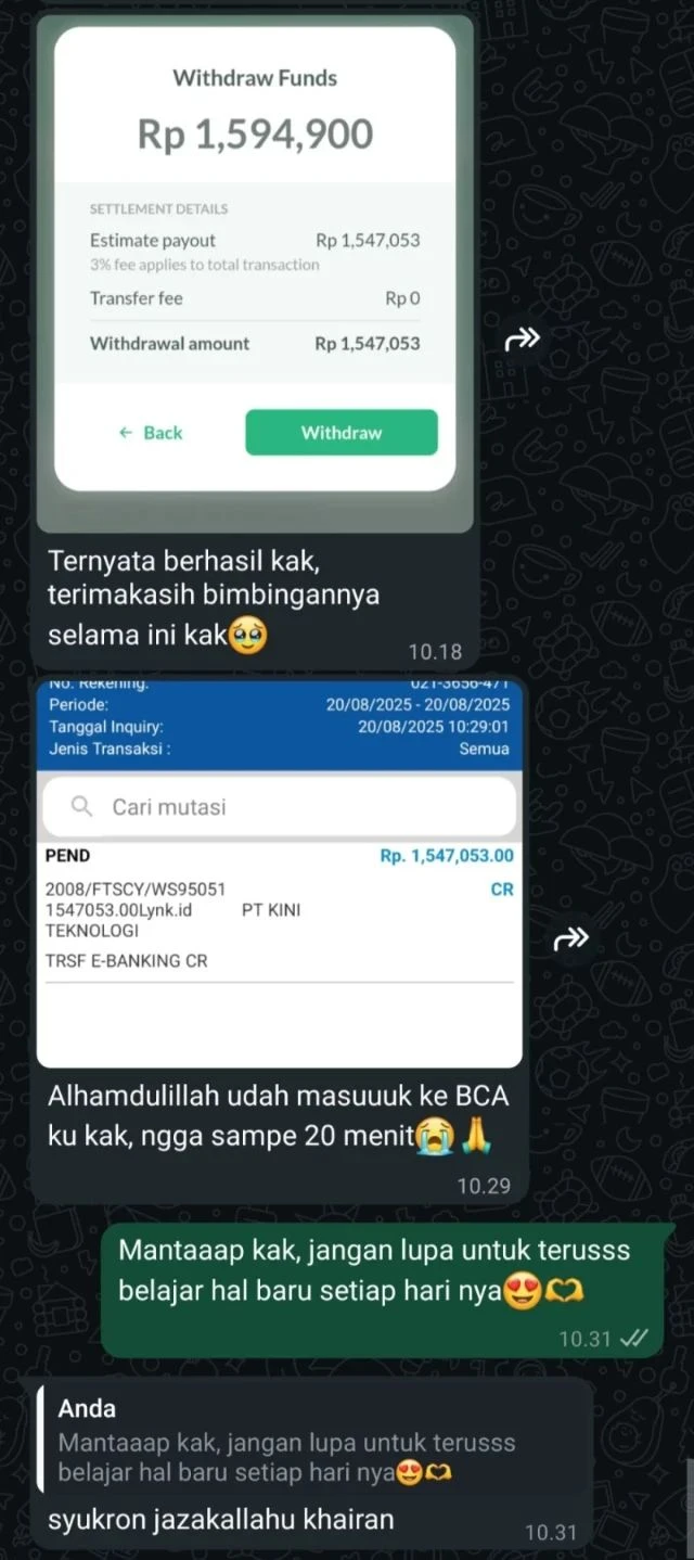 Insyaallah aku bakalan Bimbing dan Ngajarin kamu semua yang aku tahu berdasarkan pengalamanku yang berhasil dapetin 100 JUTA pertama di BULAN KETIGA jalanin bisnis ini..